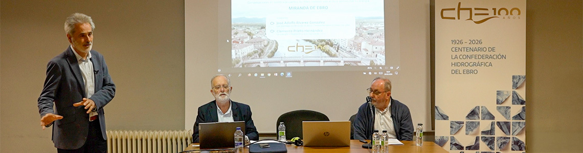 La sessió, celebrada a la Casa de Cultura en el marc de l’exposició del centenari de la Confederación Hidrográfica del Ebro, es va plantejar com una “conversa oberta” per mirar el riu amb ulls experts. Hi van participar José Adolfo Álvarez, antic cap del Servei del Sistema Automàtic d’Informació Hidrològica (SAIH) de la CHE, i Clemente Prieto, enginyer de camins amb àmplia experiència en explotació hidroelèctrica i gestió d’avingudes.