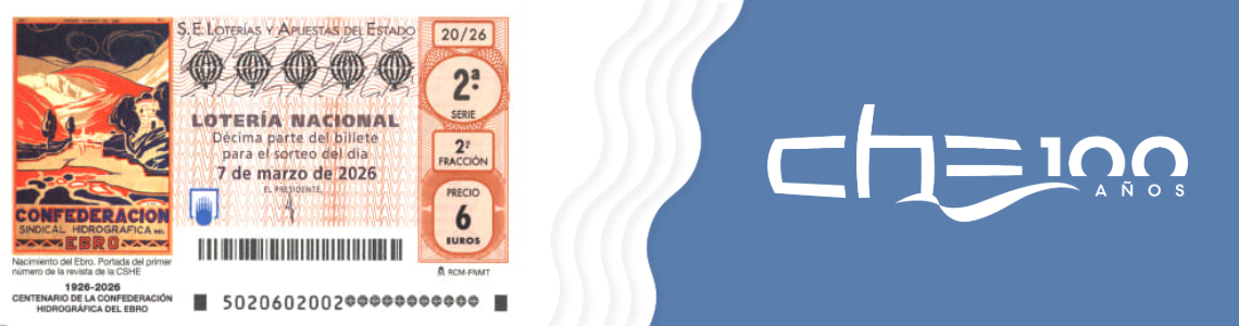 Loteria Nazionalak hamarreko oroigarri bat eskaintzen dio Confederación Hidrográfica del Ebro (CHE) erakundearen mendeurrenari, 2026ko martxoaren 7ko larunbateko zozketan. Hamarrekoaren irudiak «Ebroren Jaiotza» ilustrazioa erreproduzitzen du, orduko Confederación Sindical Hidrográfica del Ebro (CSHE) erakundearen aldizkariaren lehen azalean (1927) erabilitakoa.